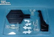 A sheet of plastic cling is used here, to protect the paint from being scratched during transport presumably. Nice touch, Bandai.