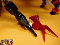 The little blue piece next to Dygenguar’s optional face comes from Dygenguar’s shoulders when you have to take it out to attach the capes’ collar.