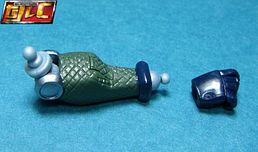 -Swapping Zerokage’s fists can be a pain, I found doing it harder to do here than on the Gx-55 (Action Type) Tobikage, I recommend popping out the entire forearm at the elbow joint to give you an easier time. Likewise, removing the block for the wrist-mounted chain launcher is harder to do here, I had to use mini screwdrivers to wedge it out.