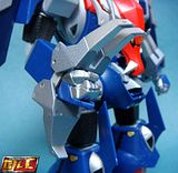 Bandai included an optional smaller Kaima head (default head is bigger, for robot mode). The smaller head actually does seem better proportioned than the default head, but not an absolute necessity for aesthetics (unlike, say, on the Gx-46 Aussenseiter), you can hardly tell the difference unless you place both heads side by side. Both heads can open their maws, too.