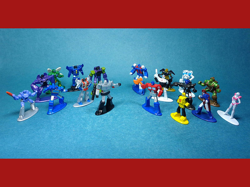 Jada Toys Mini Metals Transformers Series 3 Each figure is made from diecast, stands roughly 2 inches tall and has zero articulation. Each figure is a nugget of metal, weighing 36-48 Grams each. There are 18 figures in this set. …