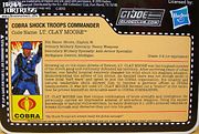 Based on a character that appeared in the Sunbow Era cartoons, Clay Moore started out as a Cobra trooper who gained Cobra Commander’s favor by exposing Dusty as a spy for the Joes working inside Cobra (The Traitor, part 2). Clay Moore’s head is a reuse of the Tombstone head from the Duke 2 pack.