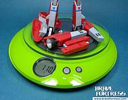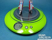 The Hi Metal R Valkyrie typically weighs 73 Grams (110 with the FAST Pack parts) and stands 6.25 inches tall (counting tip of the antennae).