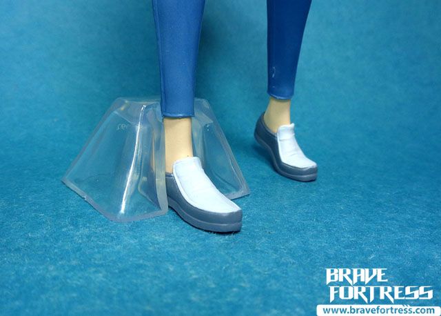 Like Ryo, she needs this clear plastic block to help stabilize her footing on a display.