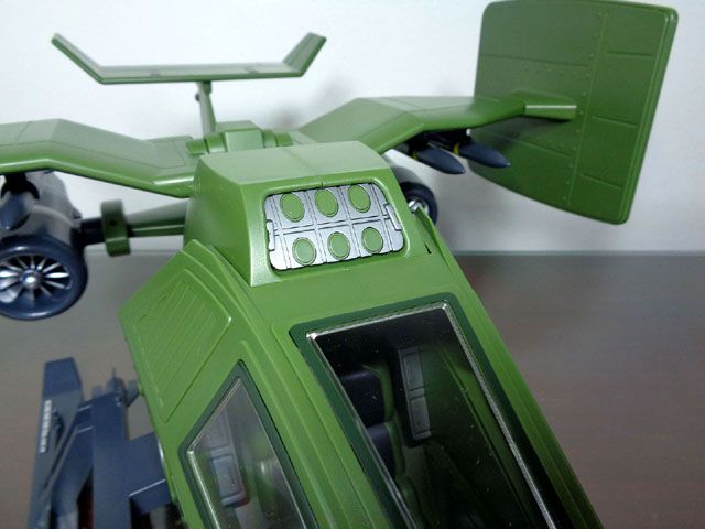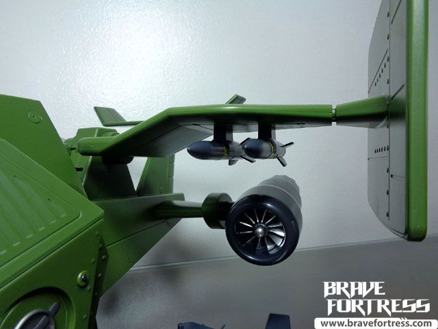 To recreate the Sky Hawk’s VTOL gimmick, the horizontal airfoil with deflection panels and twin rotating turbofan engines on the Air Eagle are on ratchet joints. They make a very satisfying click whenever you rotate them. It can be a bit tricky to assemble the wings though, due to the ratchet joint design.