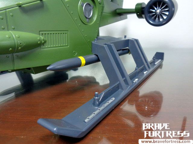 For armaments, the Air Eagle comes with missile pods above its canopy, missiles attached to the underside of its wings, twin larger Sidewinder air-to-surface missiles located on its landing skis, as well as twin Vulcans on its sides and a minigun underneath its carriage.