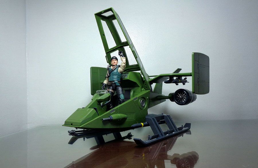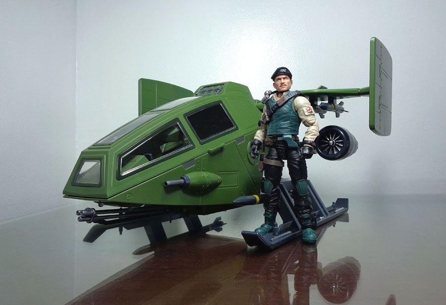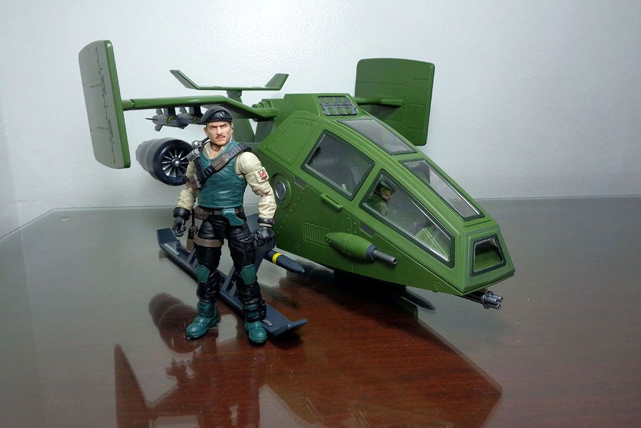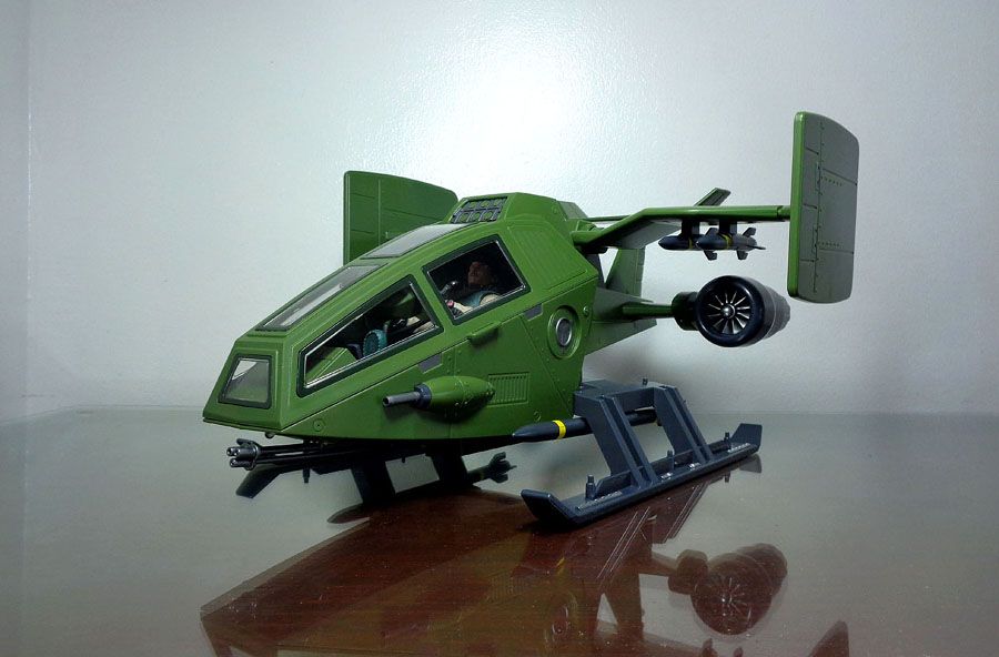 A short-range VTOL (Vertical Take Off and Landing) aircraft used by G.i. Joe for short range reconnaissance and air support, the Sky Hawk is one of the Joe team’s more versatile vehicles. Highly maneuverable and armed with powerful weaponry, the Sky Hawk can traverse most environments with great speed, providing critical tactical support in and out of combat.