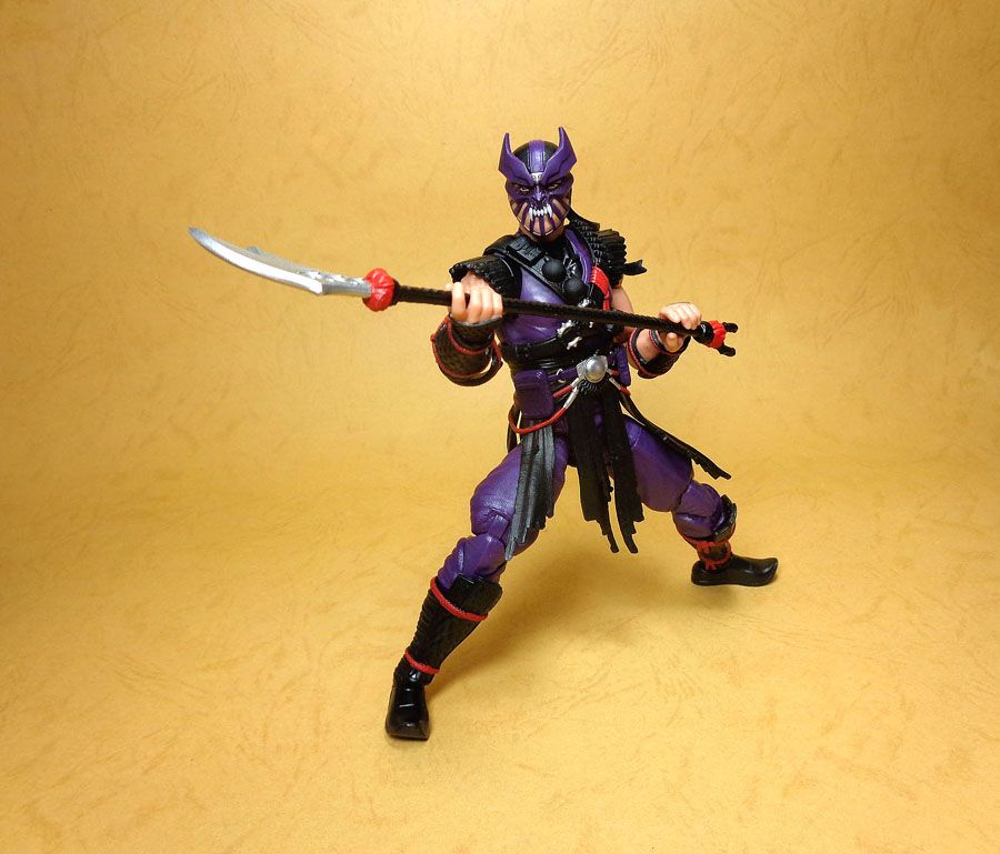Slice comes with a tiny sai weapon that can be sheathed onto his left forearm.