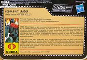 Created using highly advanced processors and programs, Overkill was a shelved prototype for the next generation of Cobra BATs (Battle Android Troopers). But since the cost was mass produce them was too high, the project was shelved until Cobra Commander decided to salvage the prototype and made him field commander of the BATs.