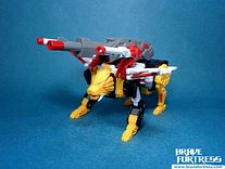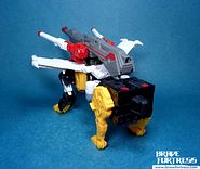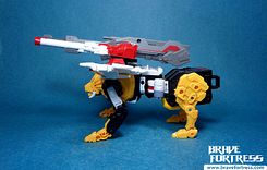 As Victory Leo, God Ginrai’s personality is nearly fully erased, leaving only traces of his old memories. When he first emerges from the procedure, Victory Leo is trapped in in his beast mode. Confused and extremely feral, he poses a dangerous threat to friend and foe alike. It was only when the young boy, Jan Minakaze’s life was in danger, did the wild Autobot fully wake up.