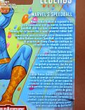 Robert “Robbie” Baldwin gains his “bouncing” powers after being exposed to an other-dimensional energy source while working part time at Hammond Research Laboratory. His new powers lets his body generate a kinetic energy field that protects him from harm, as well as turn Robbie into a dynamo of kinetic energy. Naming himself Speedball, the youngster becomes a self-styled crime fighter and eventually goes on to join the superhero group, the New Warriors.