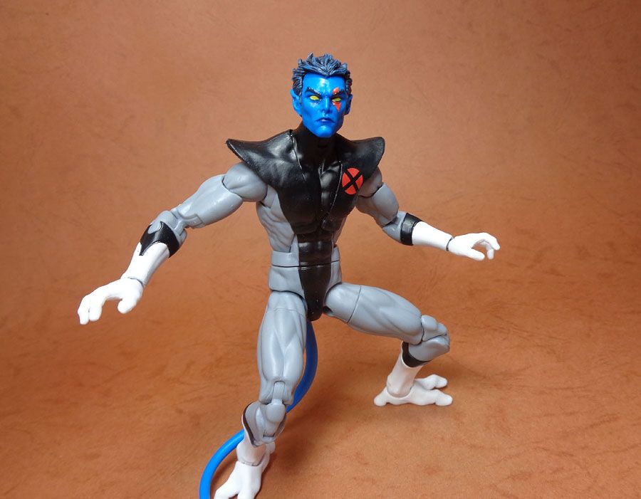 The figure sports Nightcrawler’s usual prehensile tail, which allow him to grab onto things with it.