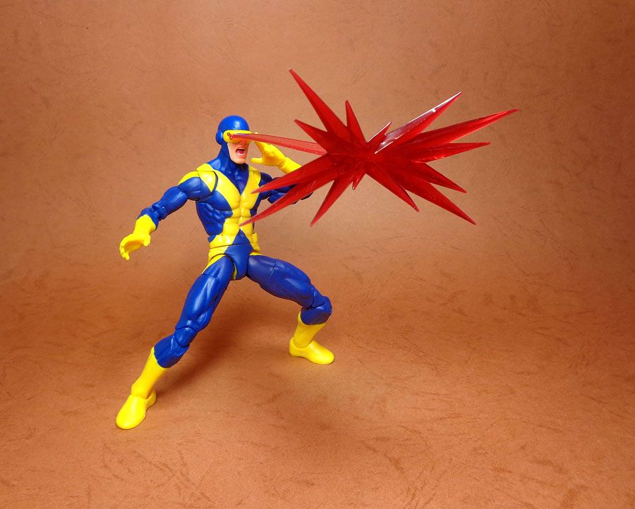 The set comes with optional left hand for recreating his usual Optic Blast pose.