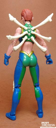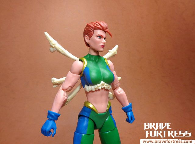 She comes with … uh.. a piece of her skin torn from her face as an accessory, to showcase her transforming abilities.