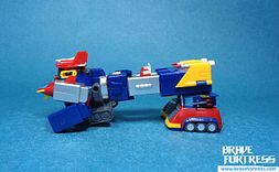 While not really indicated in the manual or packaging, you can somewhat do the Voltes Tank mode for this figure, thanks to the hinges in the ankles. It’s by no means perfect though, since the Panzer’s tank treads cannot reach the floor (same problem as with Mini Action Combattler’s Grand Dasher mode), plus Voltes’ elbows aren’t double jointed so you can’t bend them all the way in. Too bad.