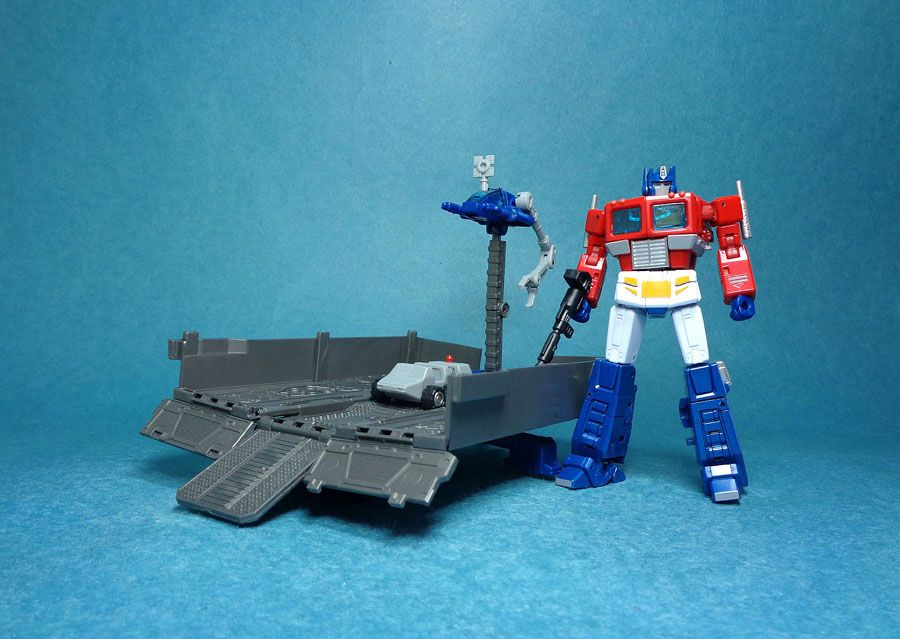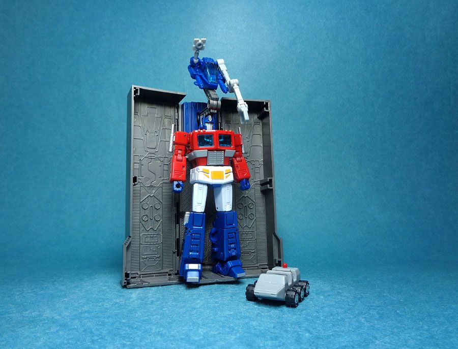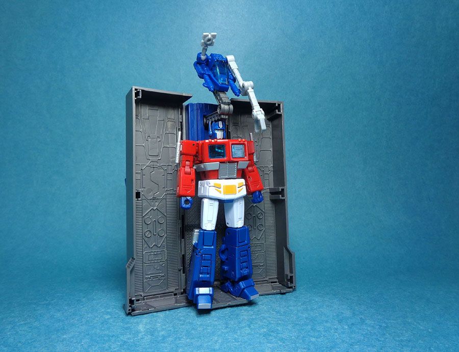 The entire trailer can also be positioned vertically to serve as a maintenance dock for Optimus Prime.