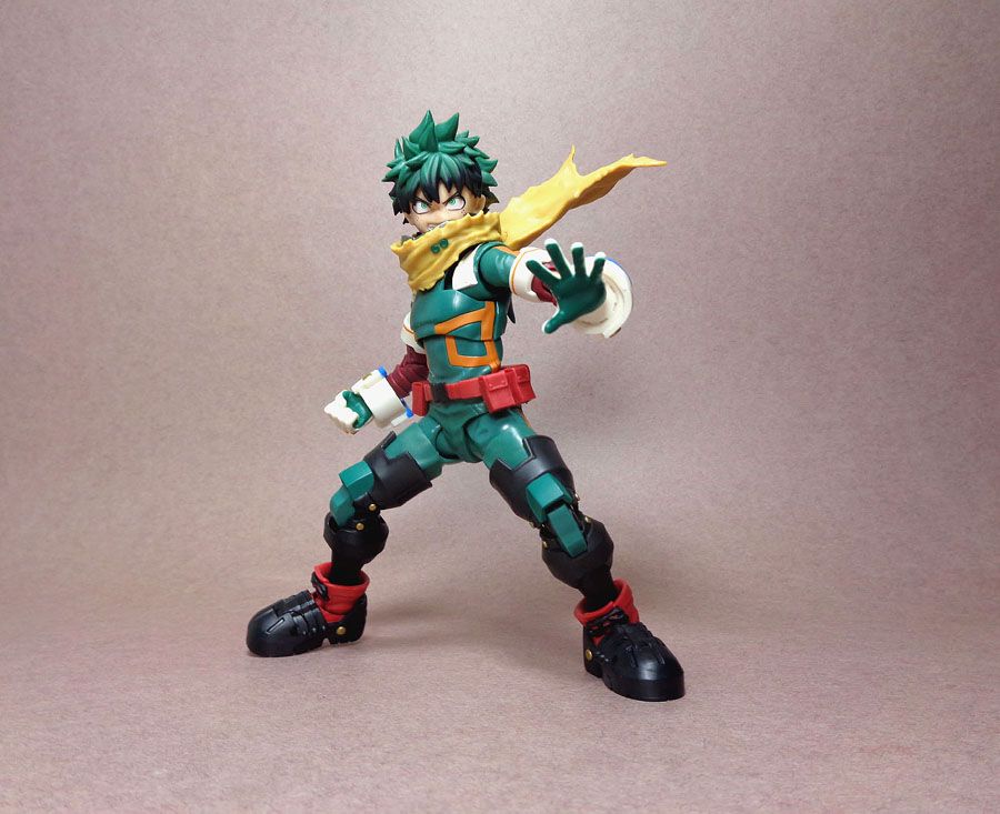 With the Bandai Anime Heroes Izuku Midoriya (Beta Costume).