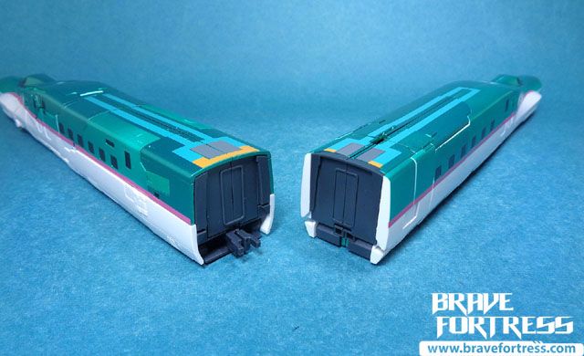 Just like in the Anime, you can open the covers on the nose couplings to connect the ends of the cars, recreating the start of the transformation sequence as it’s shown in the Anime.