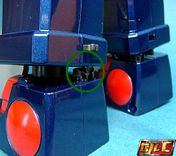 3. THIS one almost gave me a heart attack! You’ll hear a loud CRACK(!!) when you try to pry open the hips from the waist plate when transforming. I seriously thought I broke the damn thing! The small size of the peg and hole (see the area marked green) also doesn’t give much comfort in terms of durability. Seriously, take a deep breath before prying the hips free.