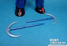 Grendizer actually has 4 variations of his “Rocket Punch”. All except the “Dizer Punch (a standard “Rocket Punch” without the fins deployed) require you to swap out the forearms and attach the various accessories to recreate the pose.