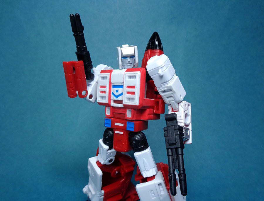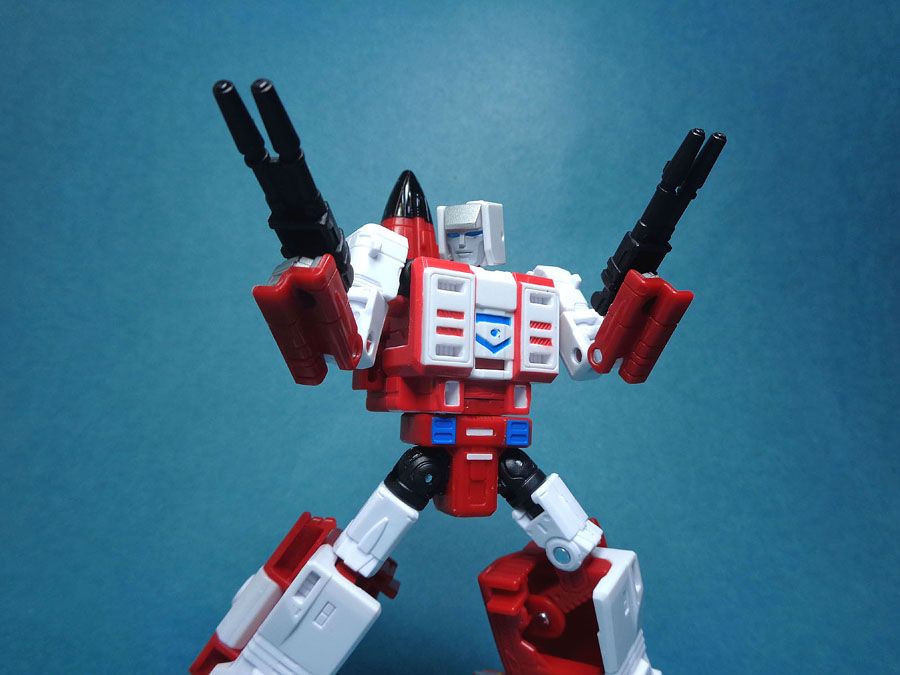 Like the rest of the team, his guns can be mounted under his wings in jet mode.