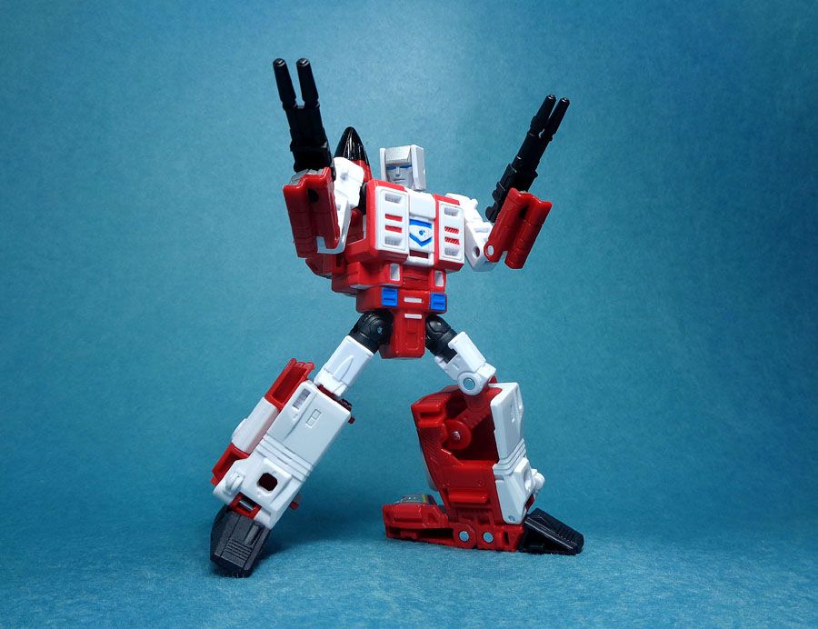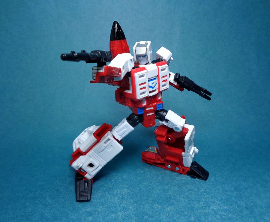 Like the rest of the team, his guns can be mounted under his wings in jet mode.