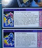 Rippersnapper hates the smell of all carbon-based life forms. He also particularly hates Autobots with a vengeance. In creature Mode, Rippersnapper’s claws and teeth can slice through almost any substance. He also has twin, ground-to-air missile launchers mounted on his back.