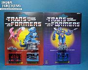 Although not indicated on the package, the two Cassettebots do combine to form Decibel.