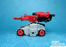Lastly, the set comes with an original gun, this is supposed to be for Earthrise Arcee, which plugs into her back and becomes a mounting point for Cog’s Weaponizer mode.