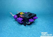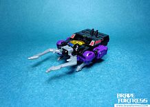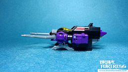 As a “bonus” for their “Evo-fusion” gimmick, Shrapnel comes with two additional blasters, which makes up his insect mode’s back legs in his alt mode.