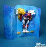 Chosen as the next successor to lead the Maximals as their Supreme Commander, Leo Prime (Lio Convoy) is a no-nonsense, stern leader. Preferring to stick to the strict, organized structure of military command, Leo Prime comes across as tough and unforgiving, but actually has a gentle, warm spark that cares for the welfare of all those under his command.