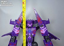 In ship mode, the Nemesis spans roughly 20.5 inches in length and is about 12 inches on its tallest height (raises up to 17 inches when the ventral fin is closed up). The toy weighs 2073 Grams and stands roughly 23.5 inches tall in robot mode.