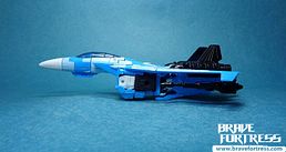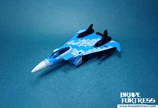 The figure is a retool redeco of Earthrise Voyager Class Ramjet with Dirge’s head. This time his deco is based on Navy “cloud camo” colors.