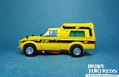 The figure is a retool using some parts from MP-56 Trailbreaker and MP-58 Hoist. Riggorus’ head and color design are modeled after the vintage Diaclone yellow variation of Trailbreaker, called the “4WD Hi-Lux”.