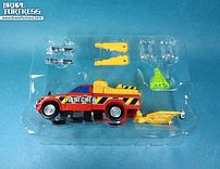 The words “Wrecker” on the sides of the alt mode are an homage to the vintage Diaclone toy’s designation: “No. 8 4WD Wrecker Type”.