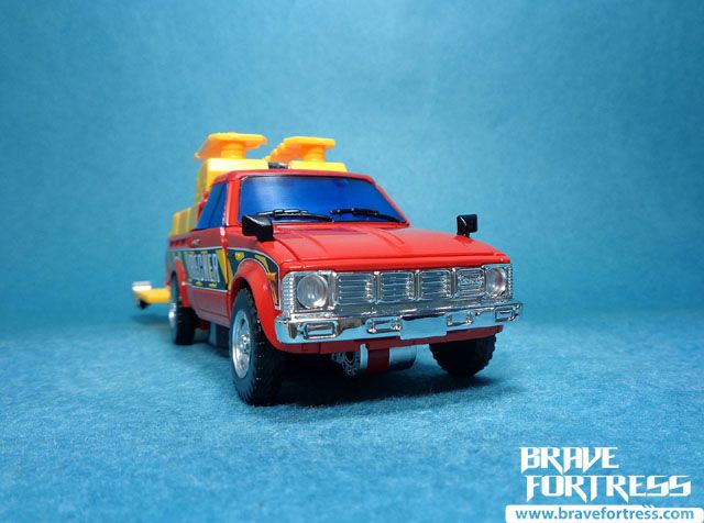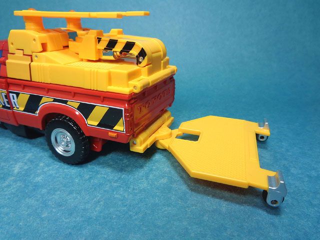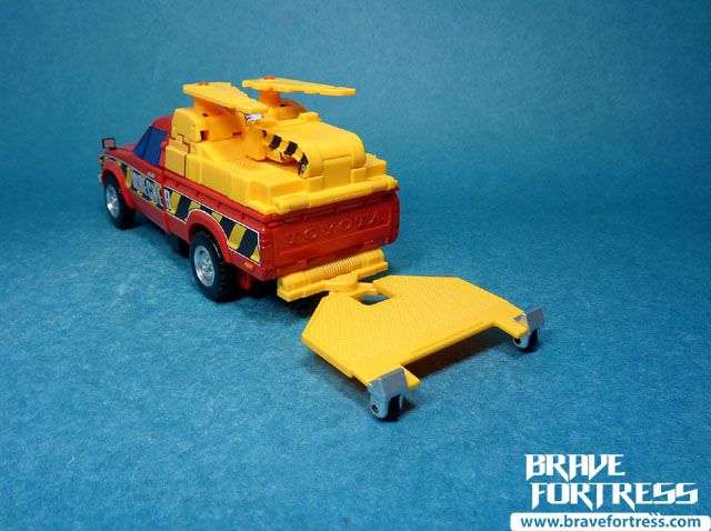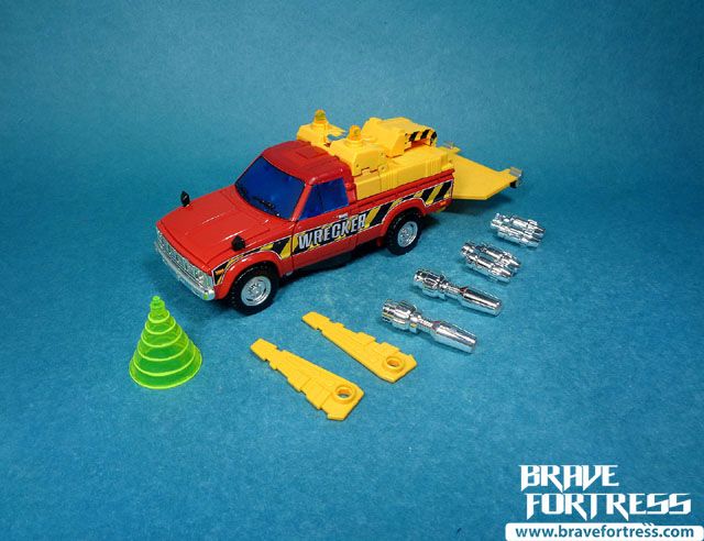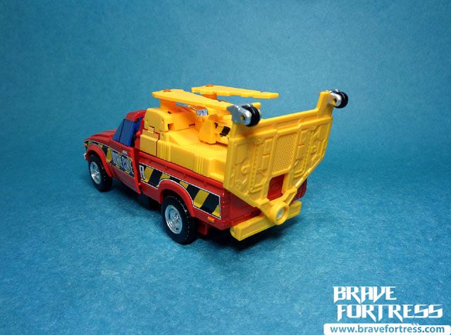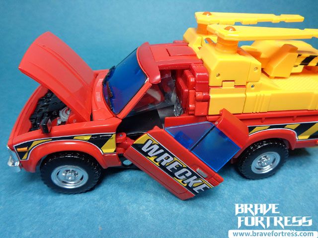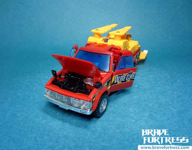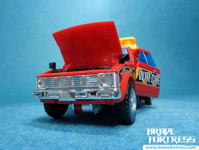 The words “Wrecker” on the sides of the alt mode are an homage to the vintage Diaclone toy’s designation: “No. 8 4WD Wrecker Type”.