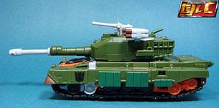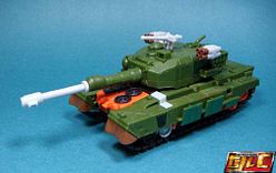 The tank turret folds out in robot mode to reveal a smaller knife weapon (Tanto).