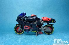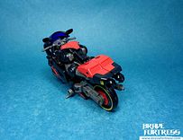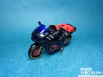 By squeezing Fireglide’s feet into Flamewar’s hips in bike mode, you can get the former to “ride” on the bike mode. Neat!