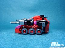 He also comes with clear red guns meant to homage his 2010 BotCon Timelines figure.