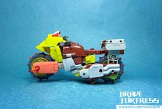 Scrapheap’s blaster can be mounted on the side of the bike mode.