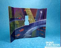 His backdrop features the planet Quintessa, Too bad the backdrop can’t be properly used, thanks to the big gaping hole in the center.