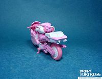 Similar to Arcee and her mold mates, you can remove the front wheel of the bike and repurpose it as a crossbow weapon.